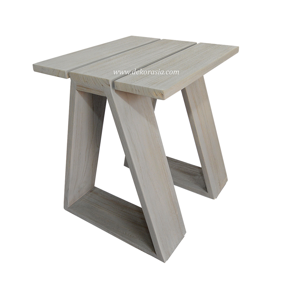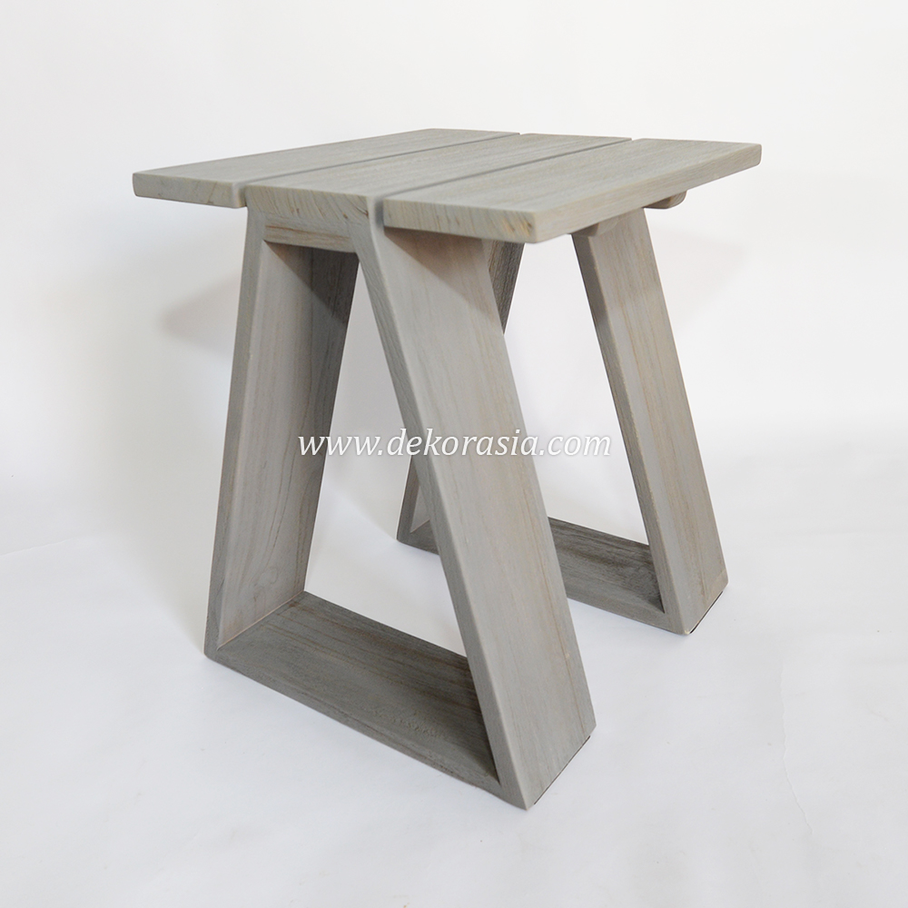 Grey Color Teak Wood Stool – Decorative Wooden Plank Stool for Patio & Living Room Furniture