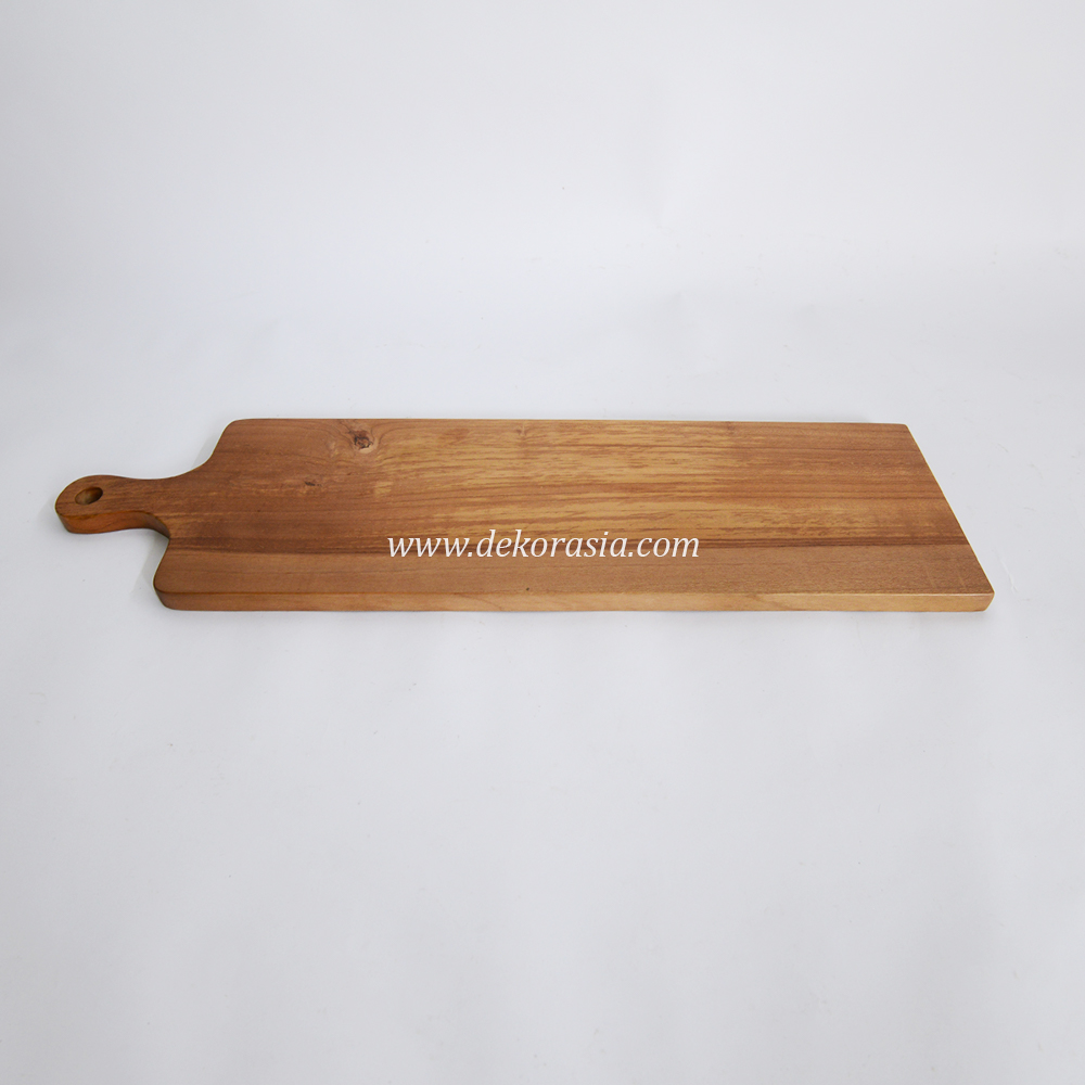 The board is made from strong natural teak wood. It has smooth edges and a clean surface. The wood’s natural oil helps resist water and stains.