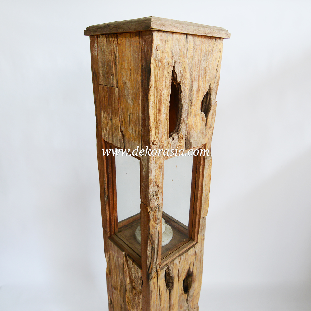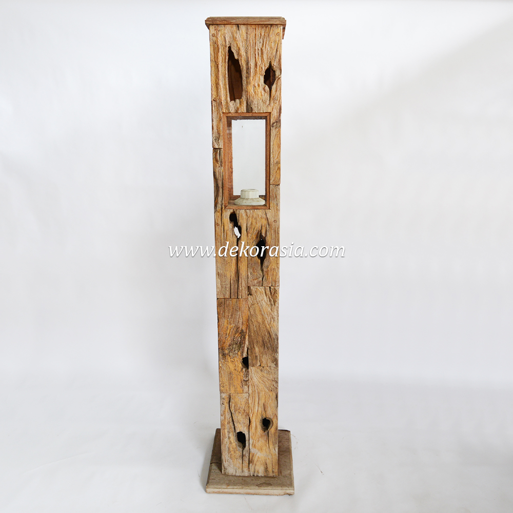 Use this standing wooden lamp as a statement piece in your home decoration. Its reclaimed wood finish adds texture, warmth, and character to your space.